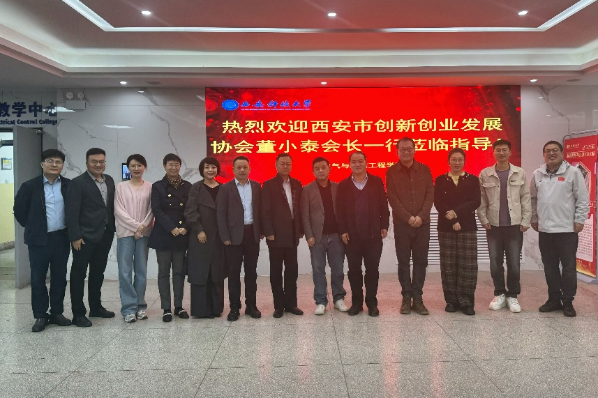 西安市创业创新发展协会会长董小泰、秘书长吴博、协会导师杨兴顿、梁刚、张哲、胡恩瑜,学院党委书记杨华、院长寇发荣、副院长潘红光、创新创业办公室主任曹乐、电气工程系副主任张晶园及相关教师,共同参加会议,现场交流氛围热烈。